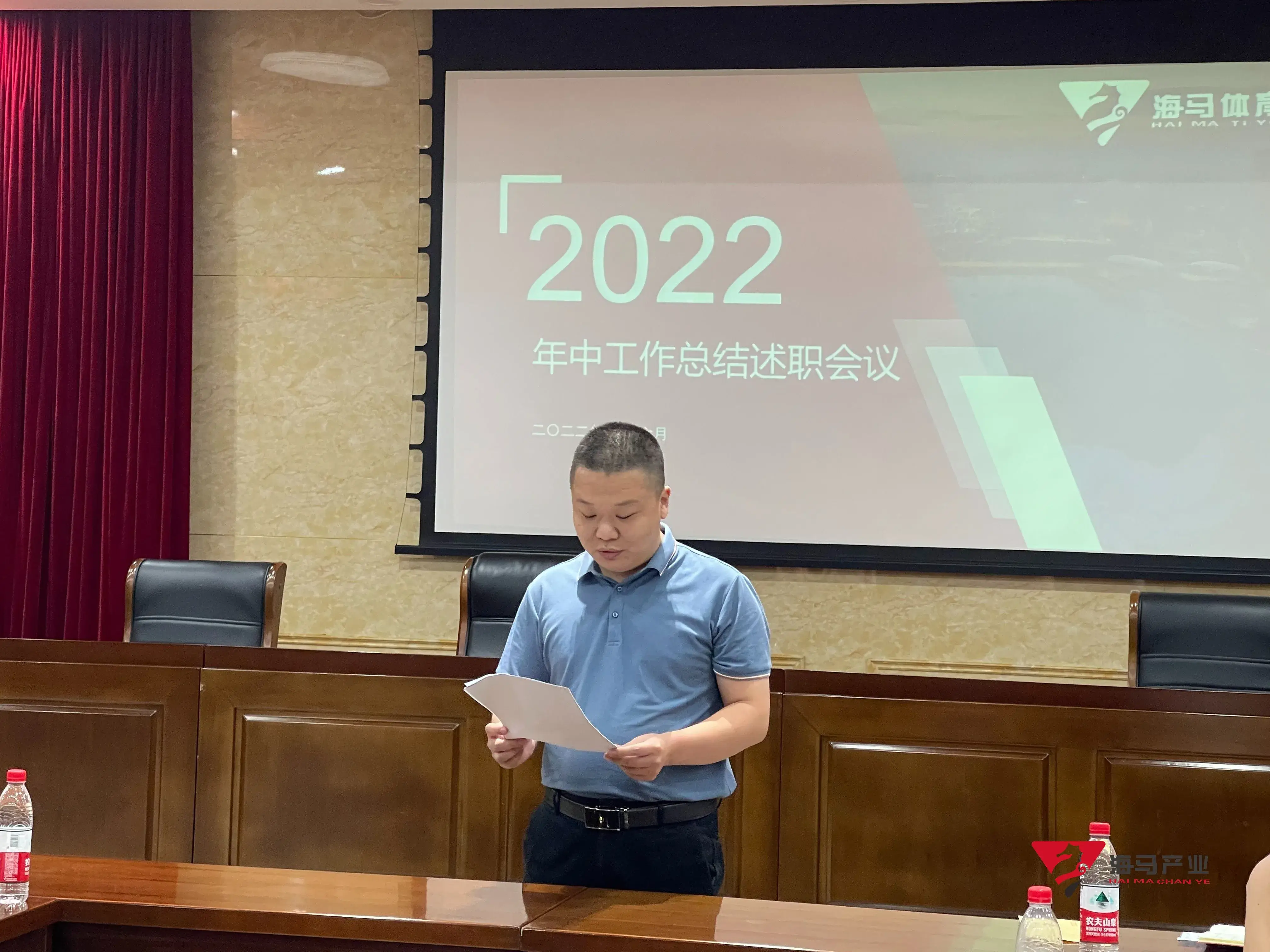 2022年6月29日下午,8868体育文化产业集团在山东省体育中心二楼会议室召开年中工作总结述职会议,会议对上半年工作成果进行了总结汇报,并就下半年重点工作进行部署。总经理王海民出席了本次会议。会议由综合管理部负责人王永健主持。